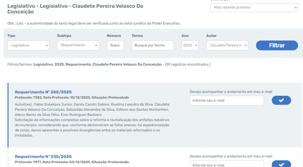 A produção legislativa é reduzida, os requerimentos não compensam e os gastos não se traduzem em entrega mensurável. Além disso, a vereadora exerce outro cargo público, atuando também na Agência do Trabalhador, o que impacta diretamente a dedicação ao mandato legislativo.
