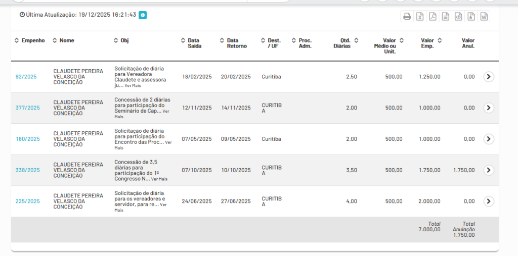 Após a apuração, a vereadora Claudete Pereira Velasco apresentou à redação um relatório interno com informações diferentes das disponíveis no site oficial da Câmara e no Portal da Transparência.