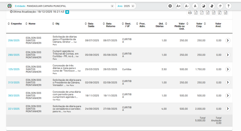Esta publicação tem caráter estritamente jornalístico e informativo, baseada exclusivamente em dados públicos, extraídos do site oficial da Câmara Municipal e do Portal da Transparência, conforme determina a Lei de Acesso à Informação (Lei nº 12.527/2011) e os princípios constitucionais da publicidade e da transparência administrativa.