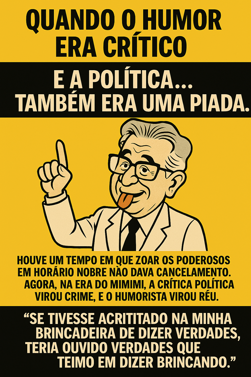 Estamos vendo a crítica virar silêncio, a sátira virar retratação pública, e o humorista virar vilão por dizer aquilo que todo mundo pensa, mas só ele tem coragem de soltar.
